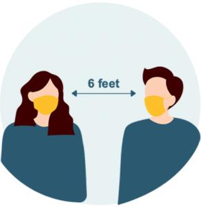 We ask that you maintain at leasta 6 feet distance from other guests and staff.